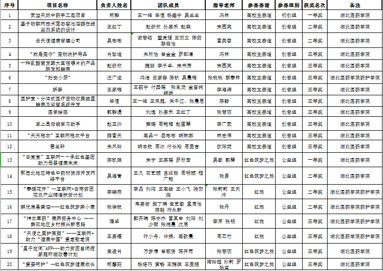 6月28日下午,由湖北医药学院大学生创新创业学院、教务处、学工处、团委共同承办的2019年“互联网+”大学生创新创业大赛校赛决赛和学工处、团委组织的暑期大学生社会实践活动启动仪式在科教楼多功能厅举行。大赛最终决出了2一等奖、5个二等奖和13个三等奖。武当天然中药手工皂研究项目和云宝宝“互联网+”承红色基因助理母婴健康未来项目分别获高教主赛道和青年红色筑梦之旅赛道一等奖。获奖名单详情如下: