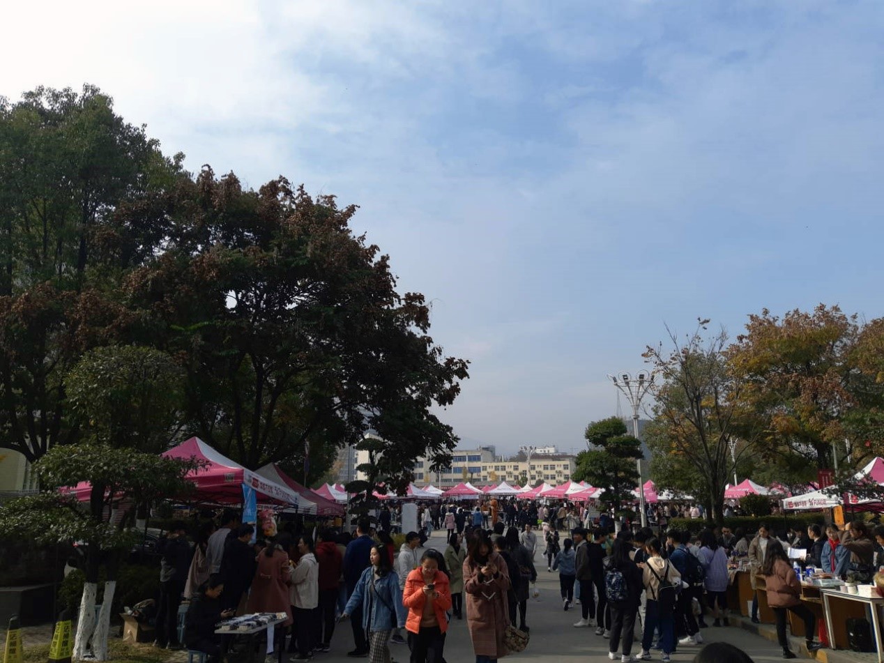 为了增强大学生就业创业意识,提高学生综合竞争力,为学生今后步入社会缓解就业压力,湖北医药学院创新创业学院特此举办创业集市活动。在活动当日共有176个小组在文明广场前练摊、出售商品,集市售卖的产品从生活用品到花卉绿植,从写真海报到玩偶积木,这些种类繁多的商品令顾客目不暇接。在活动中,学生们采用抽奖、套圈等方式来吸引顾客,促进商品销售,并赠送顾客小礼品。在顾客消费满十元之后,便可加入随时发放福利的奖品福利群。在文明广场,可随处看到商品交易成功后卖家的笑脸以及顾客买到心仪产品的满足。