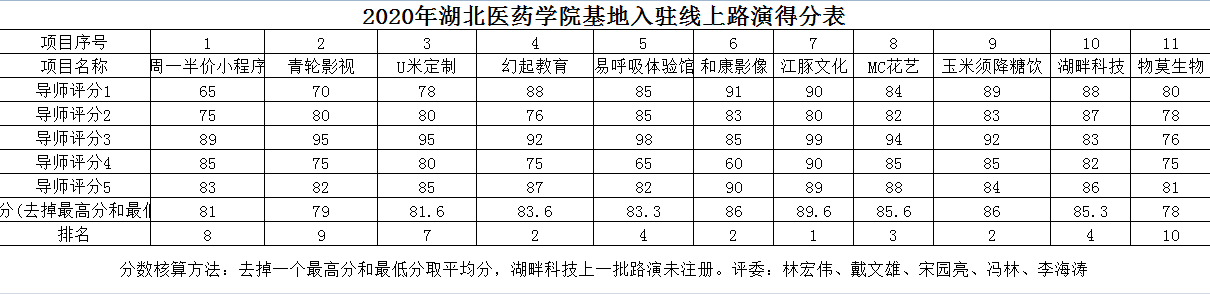 根据湖北医药学院《关于加强大学生创新创业工作的实施方案》(湖医药行发[2013]59号)和《关于遴选入驻大学生创业孵化基地创业项目的通知》要求,经由创业项目专家评审会议研究,拟同意“十堰和康影像科技有限公司”、“十堰易呼吸健康管理有限公司”等11个项目入驻生物医药科技园。疫情期间,路演采取腾讯会议进行。现将创业项目名称和负责人姓名予以公示,广大师生对评审结果若有异议,请于2020年4月30日前向大学生创新创业学院反映。大学生创新创业学院电话:0719-8891169;纪委电话:0719-8891077。