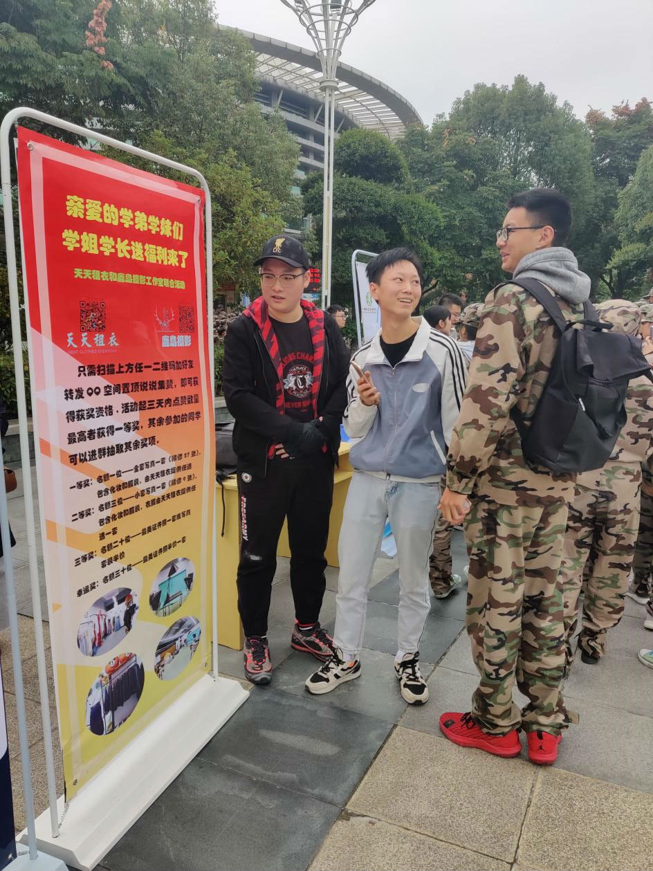 为了更好的宣传产品以及扩大店铺的知名度,商家介绍店铺信息时,利用QQ说说转发积攒、扫码加群的方式给参与者发小福利。在每一个摊位前,几乎都有新生在提问相关产品的问题,商家们细致耐心的解答。下午小雨淅沥,也没有阻挡住学生们的热情,他们在摊位前驻足,有些同学买到了自己心仪的物品,带着满足的笑容离开。