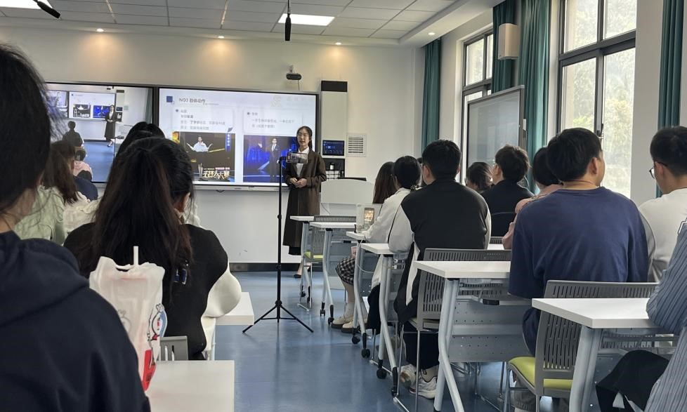 在讲解中曾琳翕同学分享自己对路演的理解,她认为路演时应着正装、化淡妆、女生束发;站立时背部挺直,女士丁字步站立,男士双脚与肩同宽;指向电脑屏幕时,应一手举起呈掌状,一手自然下垂等相关礼仪。通过本次礼仪礼节方面知识解说,我们相信在未来职场生活中同学们一定可以运用其中,获益良多。