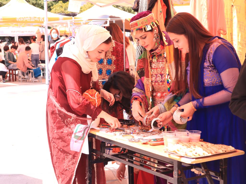 同时在本次集市中也迎来了的国外留学生朋友们的加入,异域的服饰与饰品无言诉说着来自北印度的文化,自制蒸饺也表达着他们对中华传统美食的热爱。