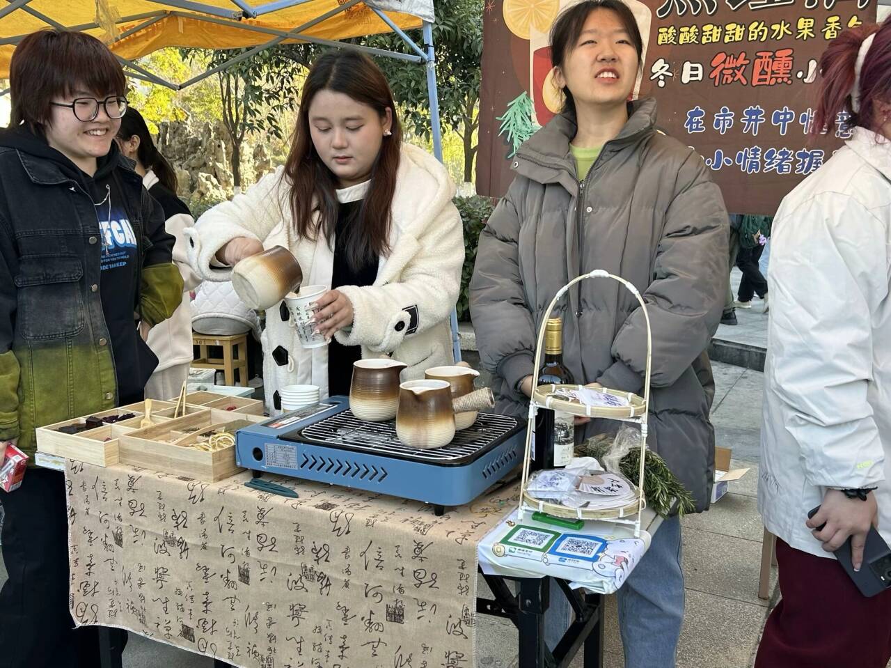 777热饮铺的热饮性价比极高,市井中的小惬意,冬日里的微醺,结合当前的天气情况,是极好的创意,小摊前的同学比肩接踵,这正体现了该创意的成功。