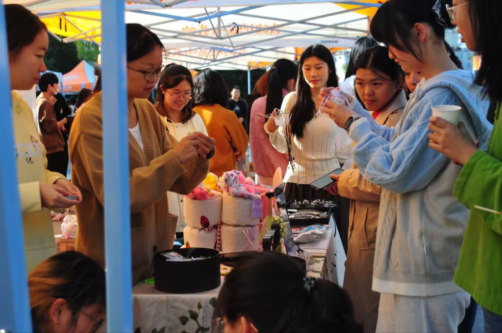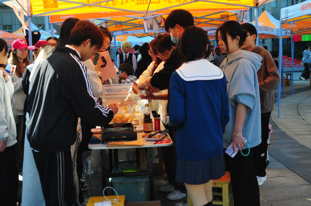 此外,集市现场还有可口的点心和温暖的饮品供同学们品尝。在这秋高气爽的季节里,品尝着甜口的点心,徜徉在校园的小道中,让人感受到了无比的温馨与惬意。